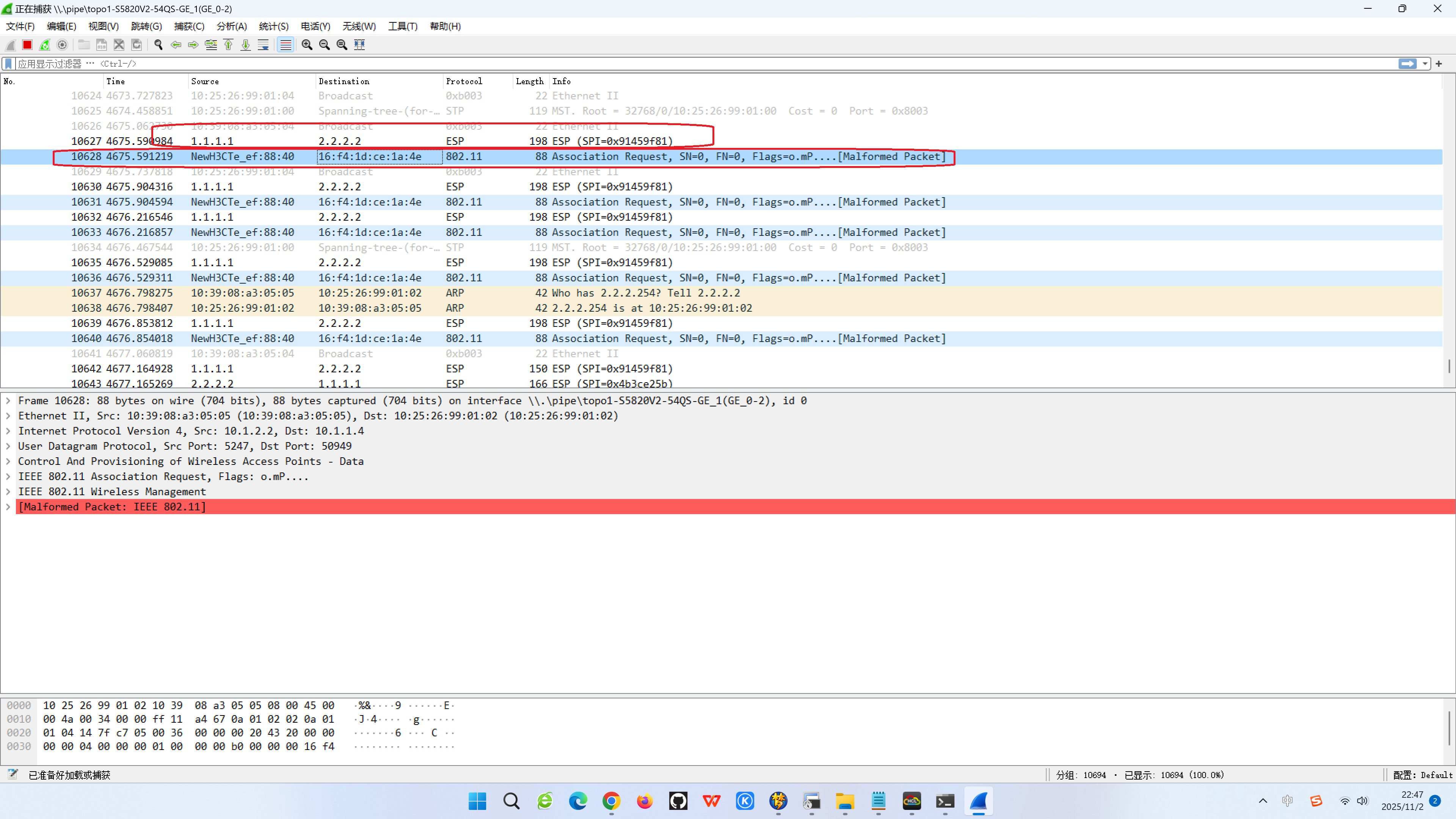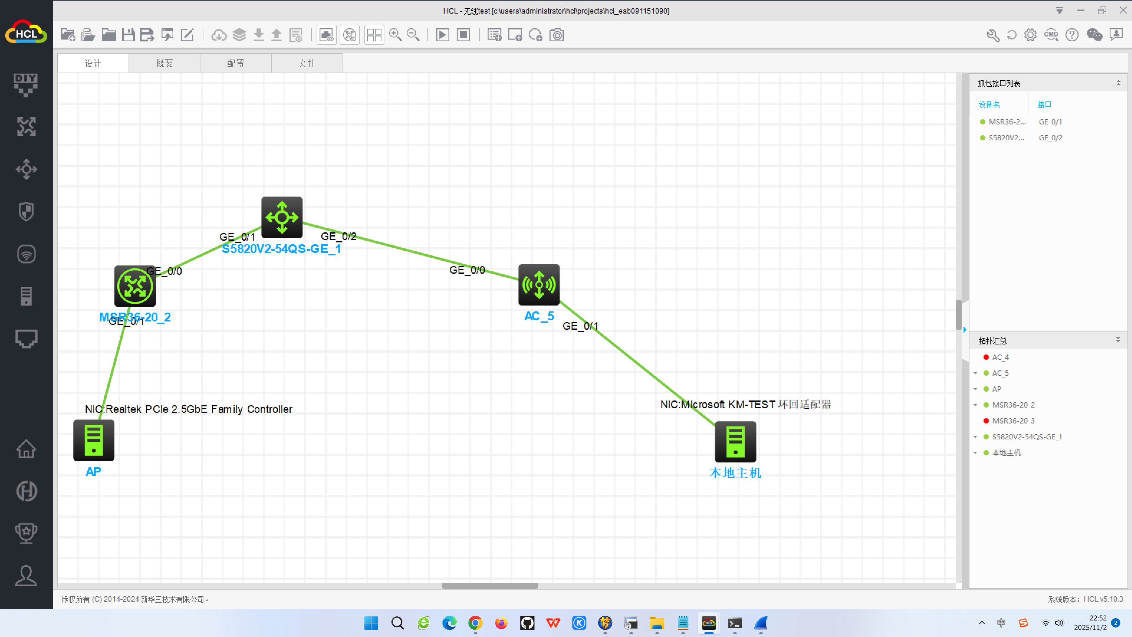 在ac的g1/0/0口配置路由口,并配置ipsecvpn,其ap上线及心跳的报文正常,唯独客户端连接产生的报文从路由到ac正常,但从ac到路由就有问题。ac内网口配置在换回口上,他跟对端的内网组vpn专网。