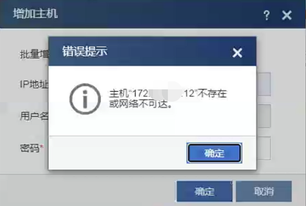某局点在CAS集群中增加主机失败,报错“主机X.X.X.X不存在或网络不可达”。