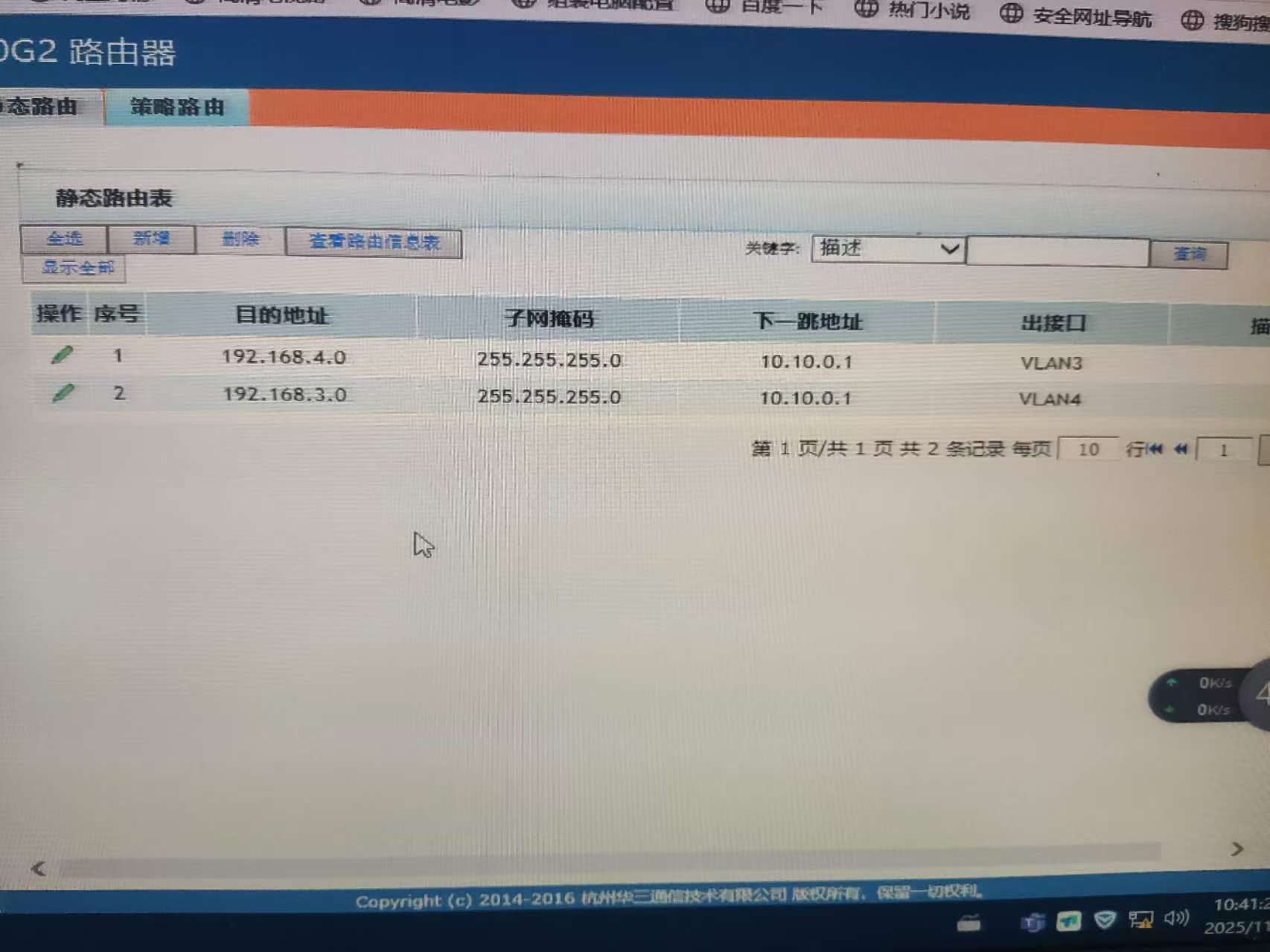 就是在电脑互ping不了,设置了个静态路由策略