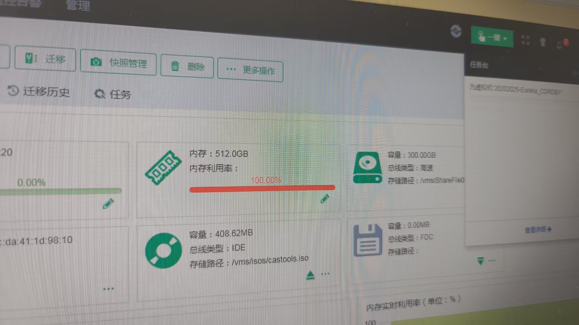 1、遇到任务卡住,最好了解一下在此之前这台虚拟机有什么动作,比如这台就有“快照”的动作,记录如下: