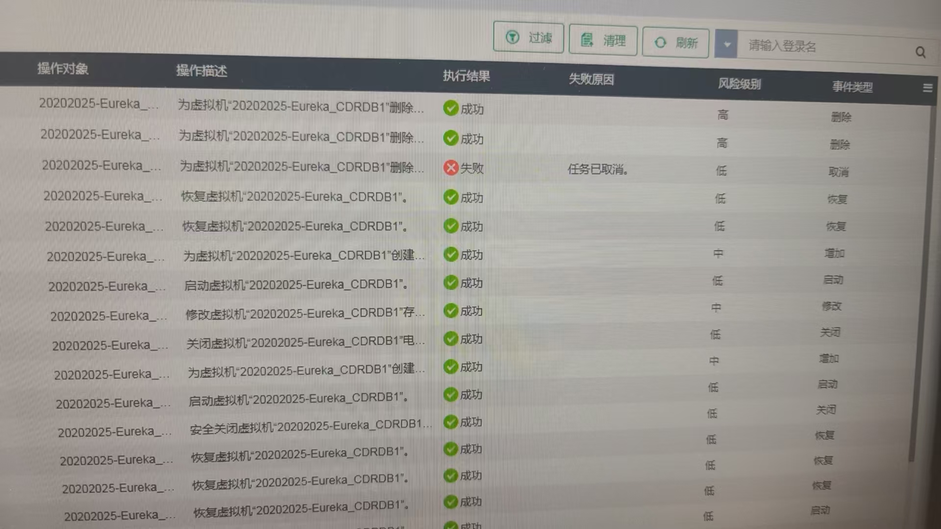 2、前台看快照任务是“成功”状态,且快照页签下有显示对应的外部快照,除此之外没有别的任务。那就到后台通过ps -ef|grep <虚拟机名称>看看是否后台有其他进程,比如第三方平台通过调用UIS接口产生的动作,可能不会在前台显示。