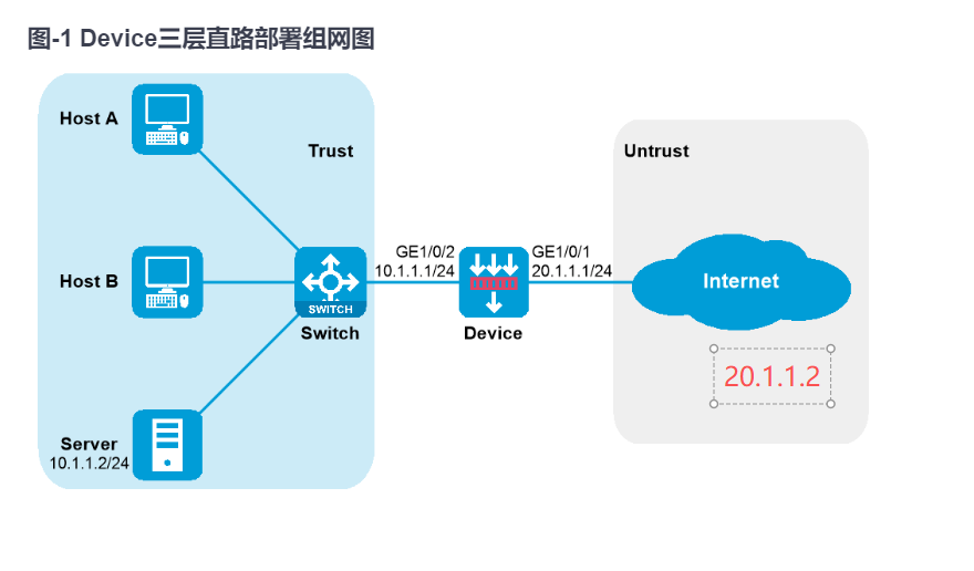 双向NAT实现原理及典型配置案例,建议采用以下方案实现内网10.1.1.2与外网20.1.1.2的直接互访: