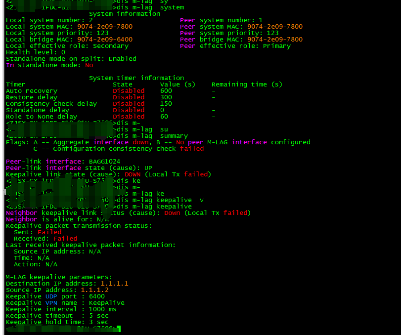 通过以上步骤,可彻底解决 “Local Tx failed” 导致的 Keepalive 异常,确保 M-LAG 双活系统的心跳检测正常运行。