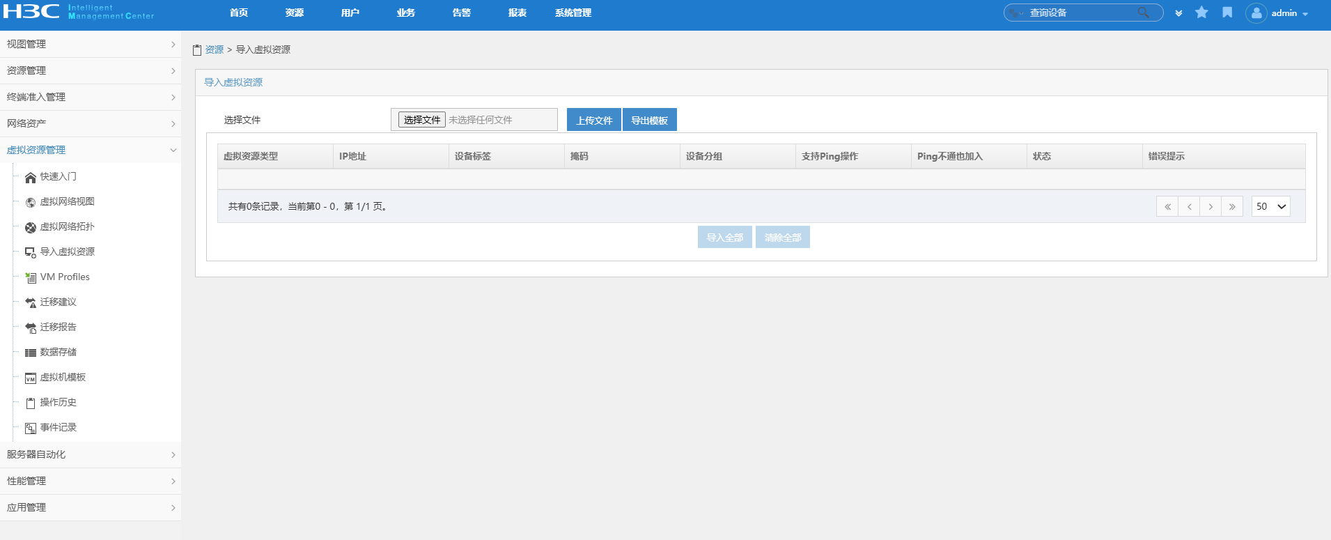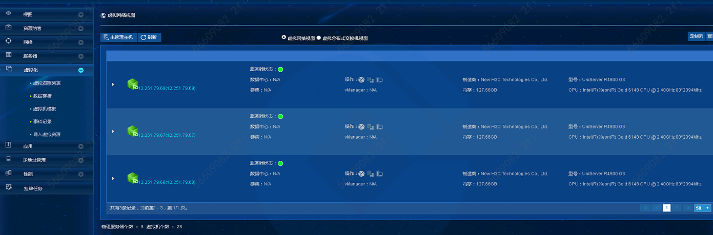 单击左侧导航树[虚拟化]菜单项,进入虚拟化管理页面。