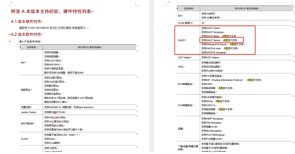 今天遇到该设备无法全局下键入:dhcp enable的问题,当时版本为H3C S5130S_EI-CMW710-R6351P07。经过查看版本说明和硬件参数。认为是设备限制: