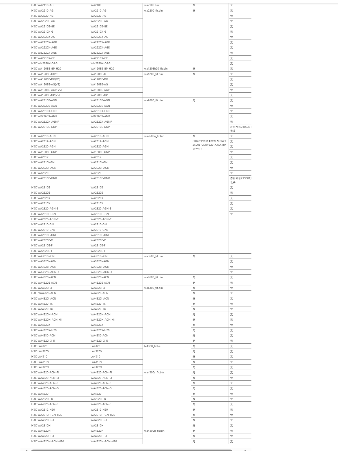 各位大佬 谁能提供下H3C WX2540E最新的AC升级包,我这边需要纳管H3C EWP-WA5320-SI-FIT的AP,目前在后台AP-AP设置-新建-AP型号 无法选择该AP型号