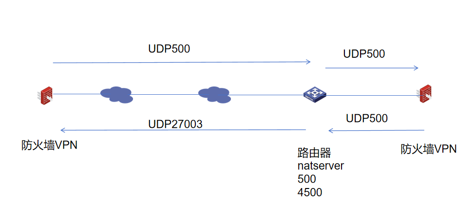 防火墙回给nat设备源端口是500,但是nat设备回给对端vpn源端口变成了27003
