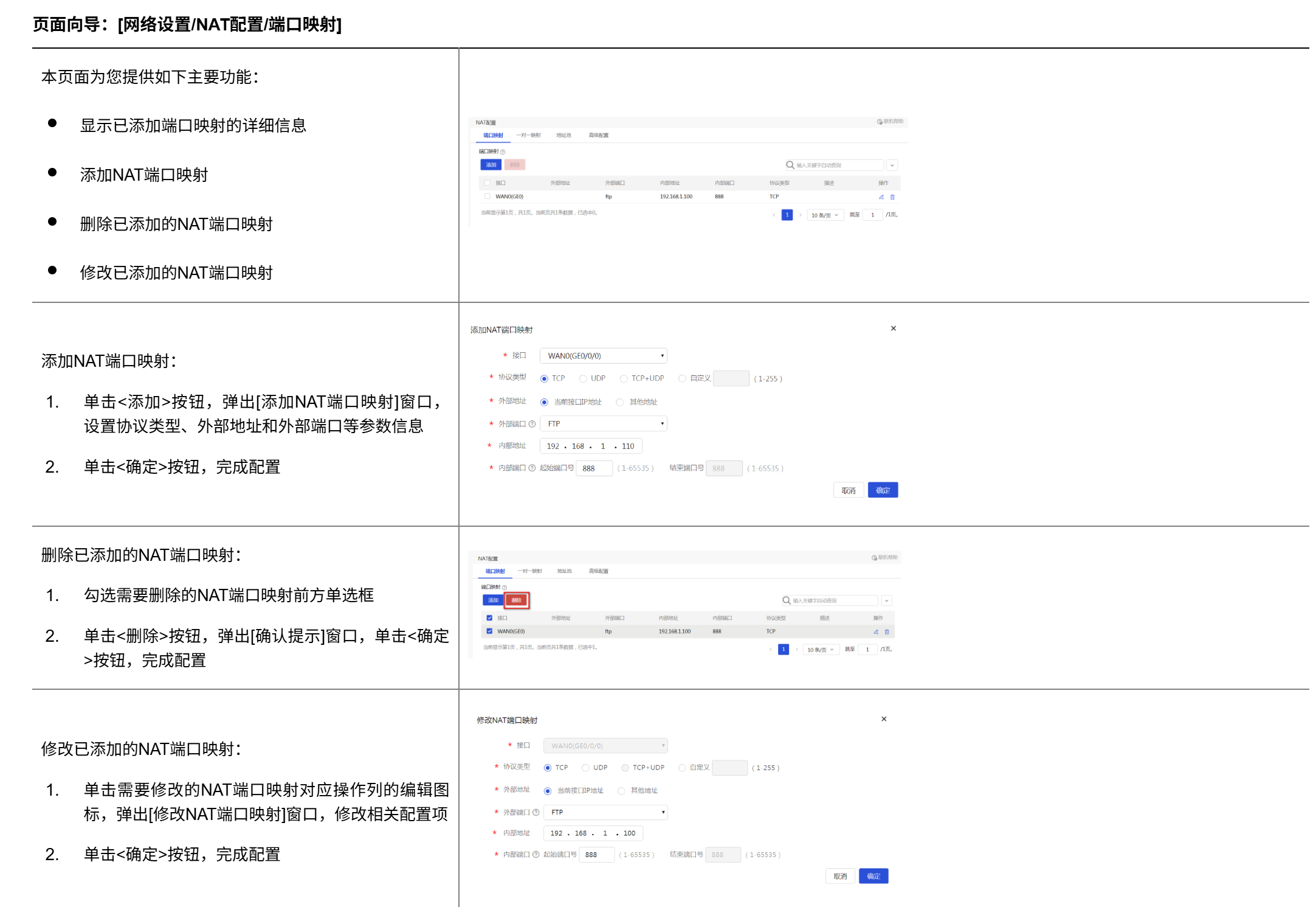 点击添加按钮,进入添加 NAT 端口映射页面