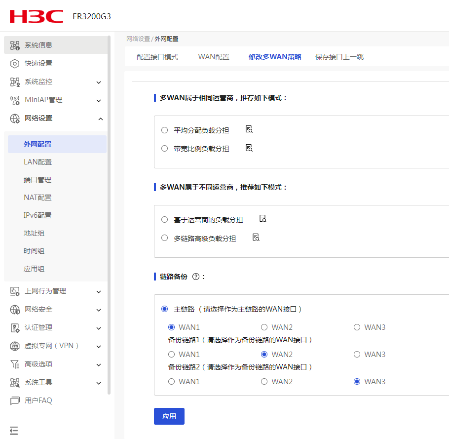 求助ER3200G3路由器,修改多WAN策略的菜单如图,没有手动模式(静态路由或策略路由),怎么选择?