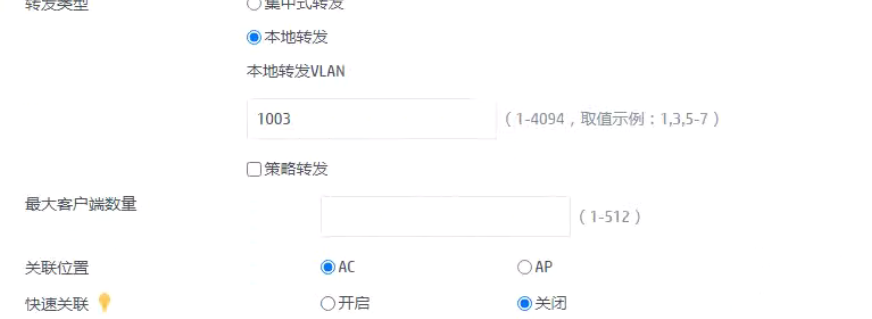 在本地转发模式下,建议将关联位置配置为默认的AC上。虽然数据流量由AP直接转发,但控制管理建议保留在AC,以确保集中管控和策略统一,除非有特殊组网需求(如Remote AP场景)。