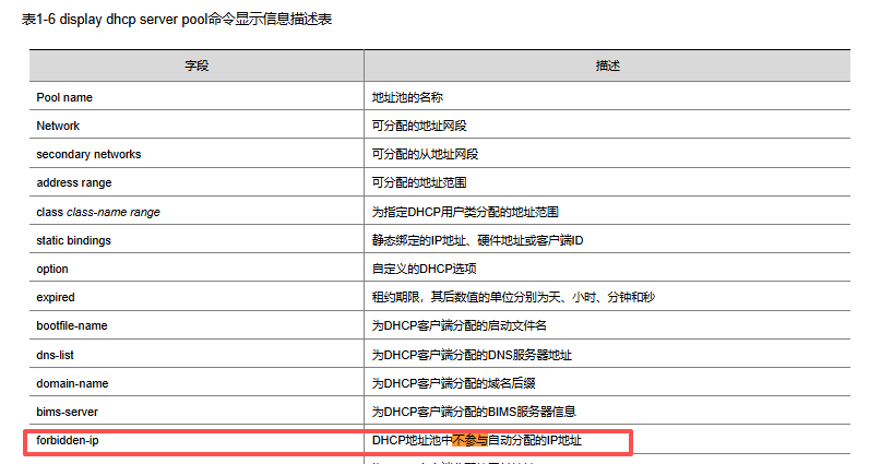 [H3C-dhcp-pool-名称] forbidden-ip 起始IP [结束IP]