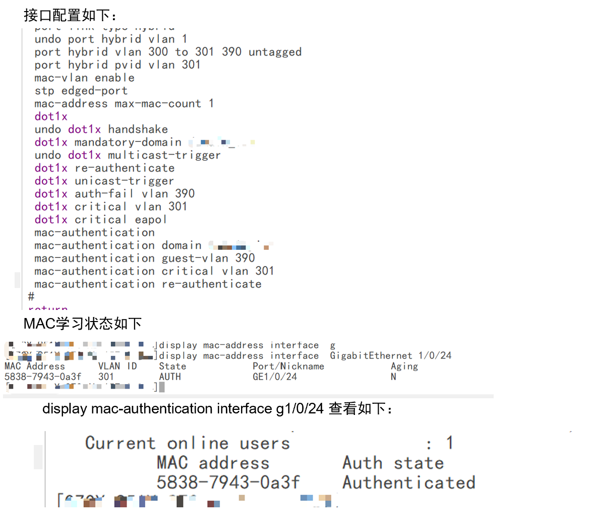 方案一:开启mac-trriger+portal的mac无感知快速portal认证,在终端连入网络获取IP地址之后会先进行mac地址的合法性校验,将认证服务器比如IMC将打印机这类设备的mac地址添加为永久存在的无感知表项,就能实现正常上网了。