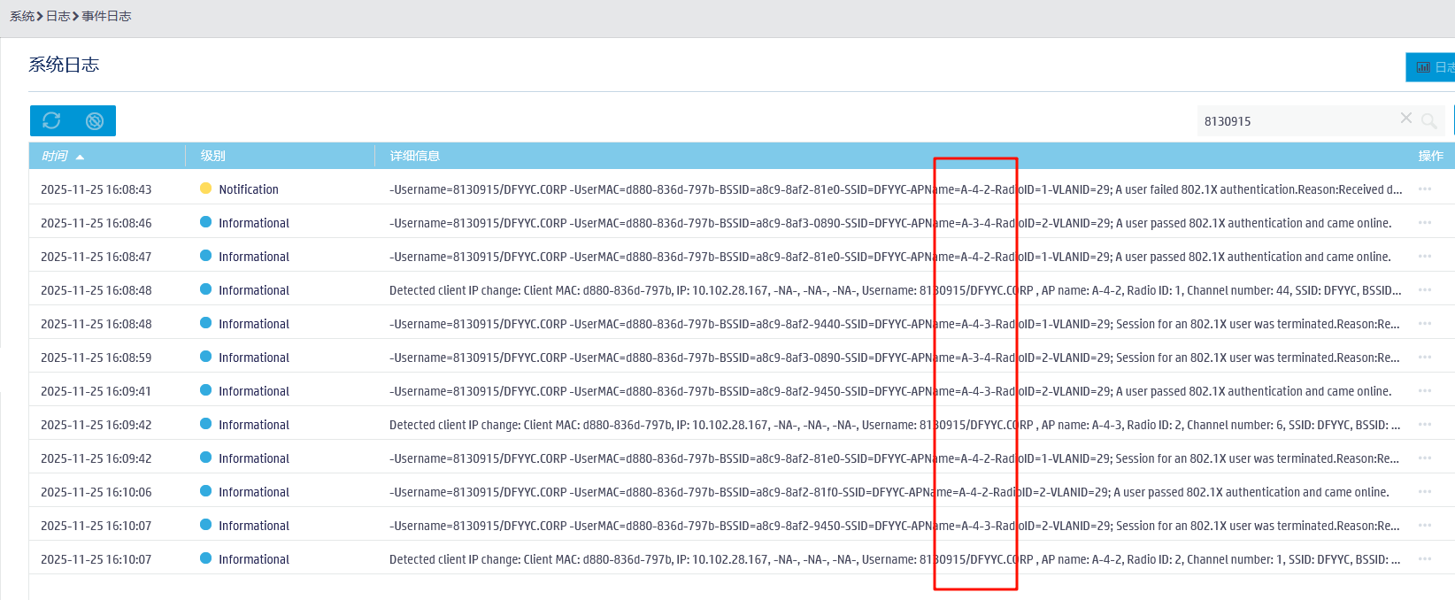 3. 起一个没有dot1x认证的测试服务模板,只绑定在这两个AP的Radio口下,在故障区域用相同终端连接测试,看是否有类似的现象,来确认下是否与dot1x认证有关。