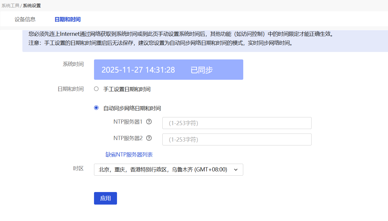 GR3200路由器系统时间显示不对,其他上网一切正常,需要怎么设置跟改正确时间,断电后时间又恢复了到1970年