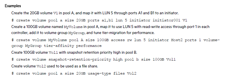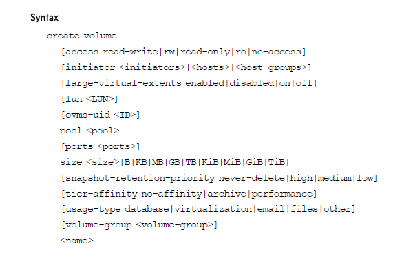 # 创建虚拟卷 createvv <CpgName> <VolumeName> <Size>