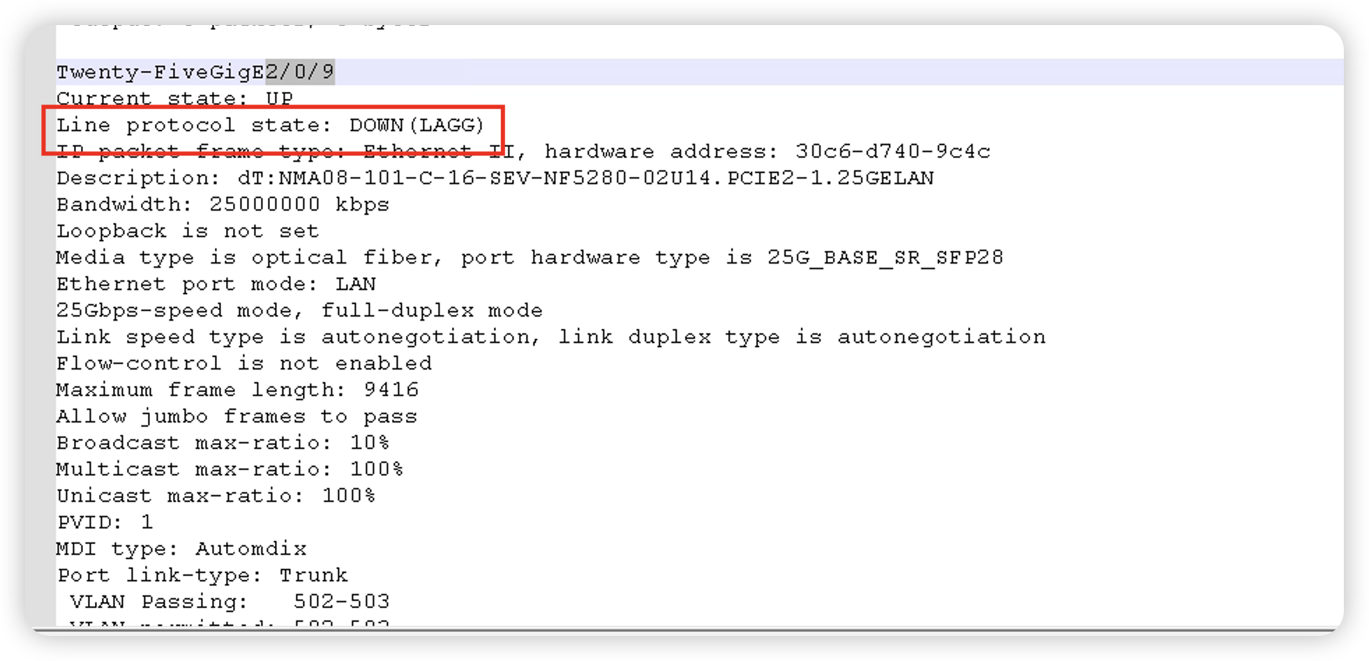 动态链路聚合接口未选中,接口收发光正常,协议状态down