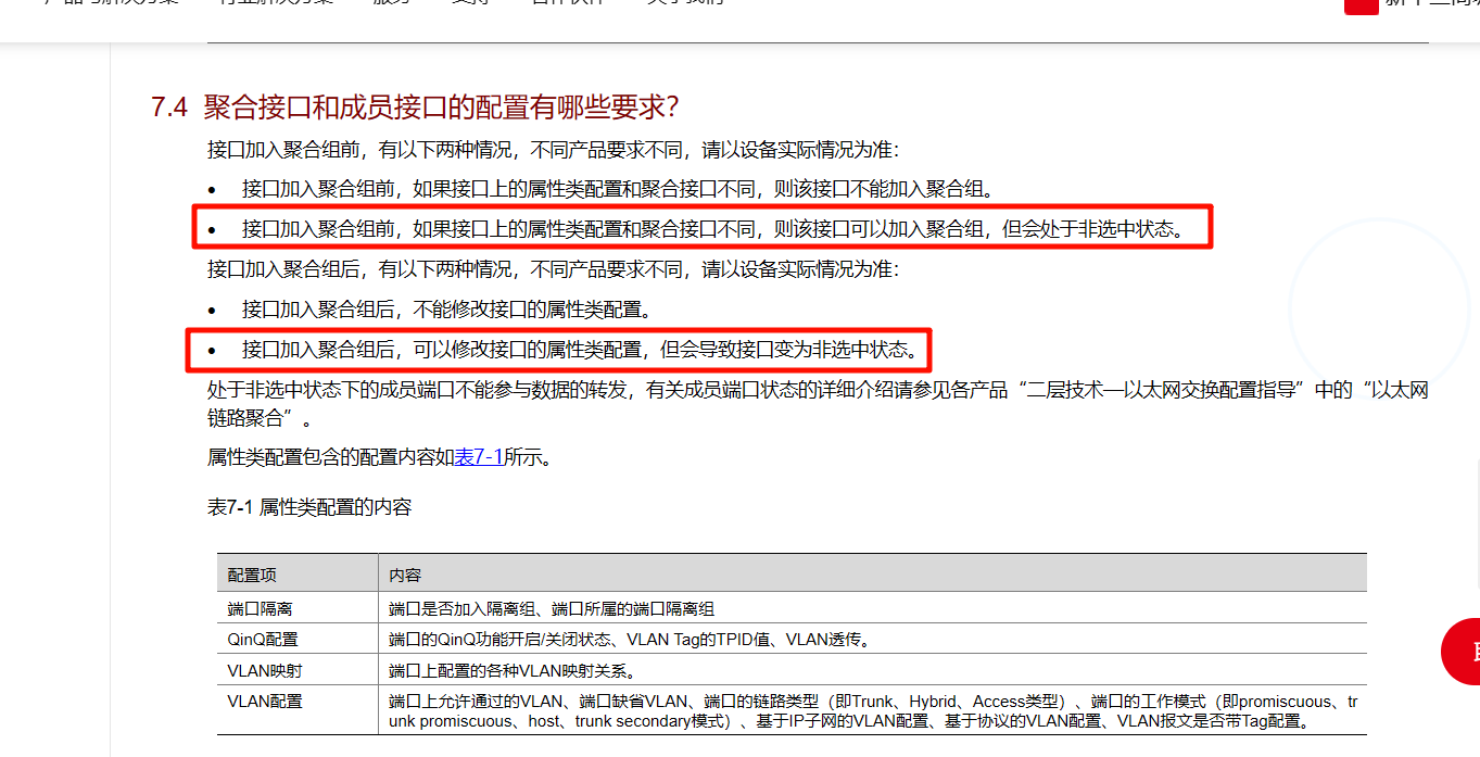 参考手册排查下 7.4 聚合接口和成员接口的配置有哪些要求?