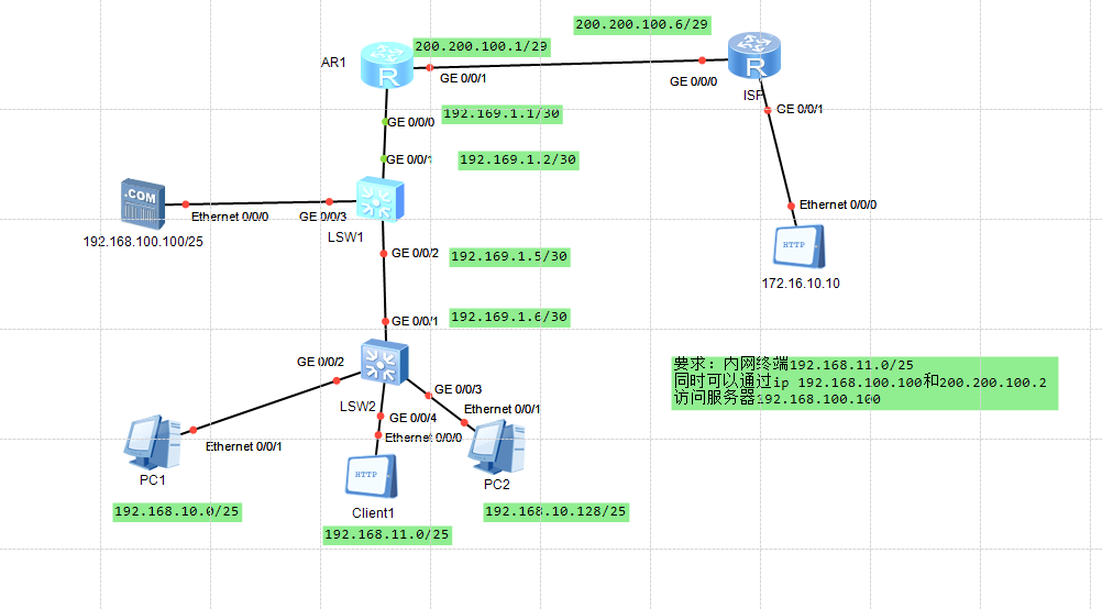 怎么实现,内网终端192.168.11.0/25 同时可以通过ip 192.168.100.100和200.200.100.2 访问服务器192.168.100.100