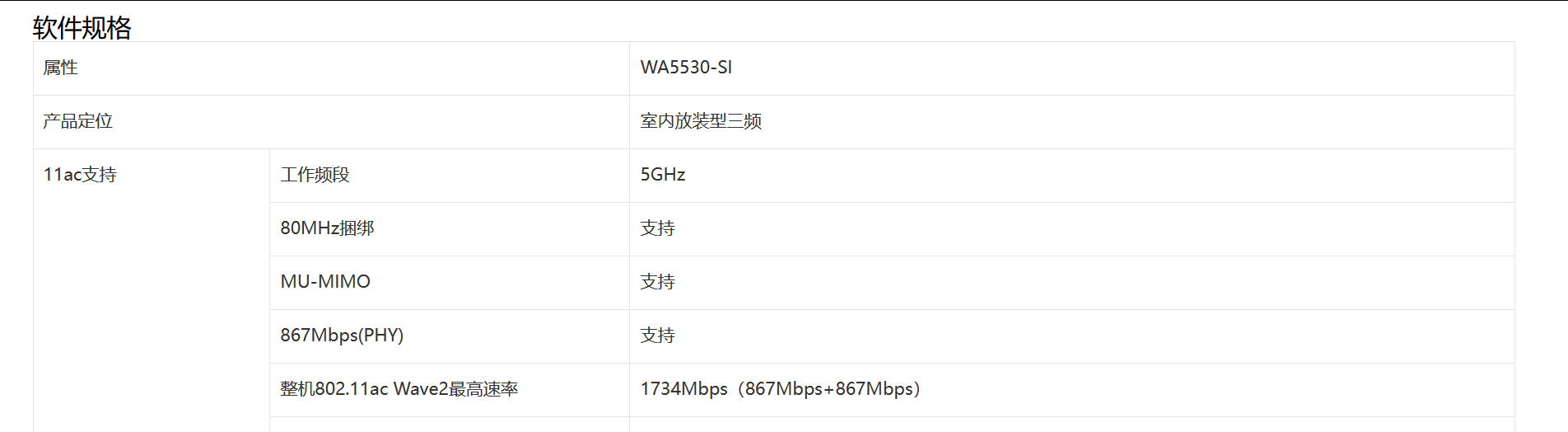 11ac支持 | 工作频段 | 5GHz |