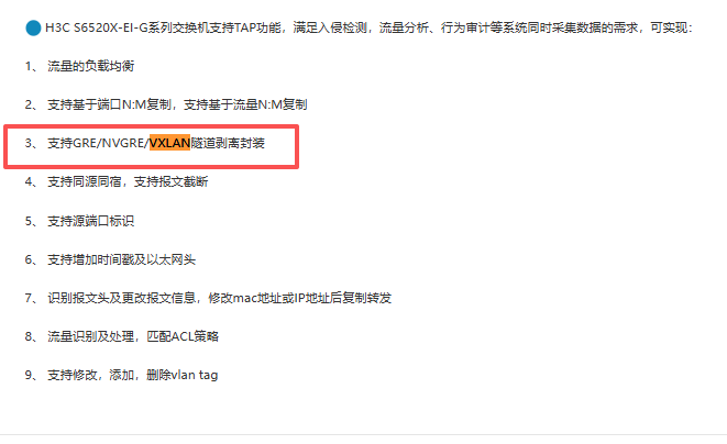 3、 支持GRE/NVGRE/VXLAN隧道剥离封装,算是具备部分功能吧