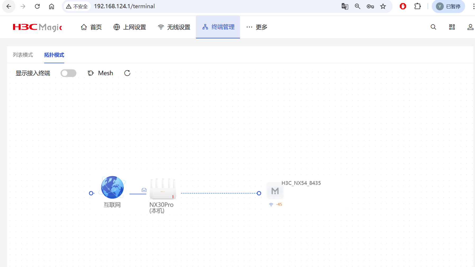 NX30pro NX54 mesh组网后,管理后台(http://192.168.124.1/terminal) 无法看到子路由器下连接的设备