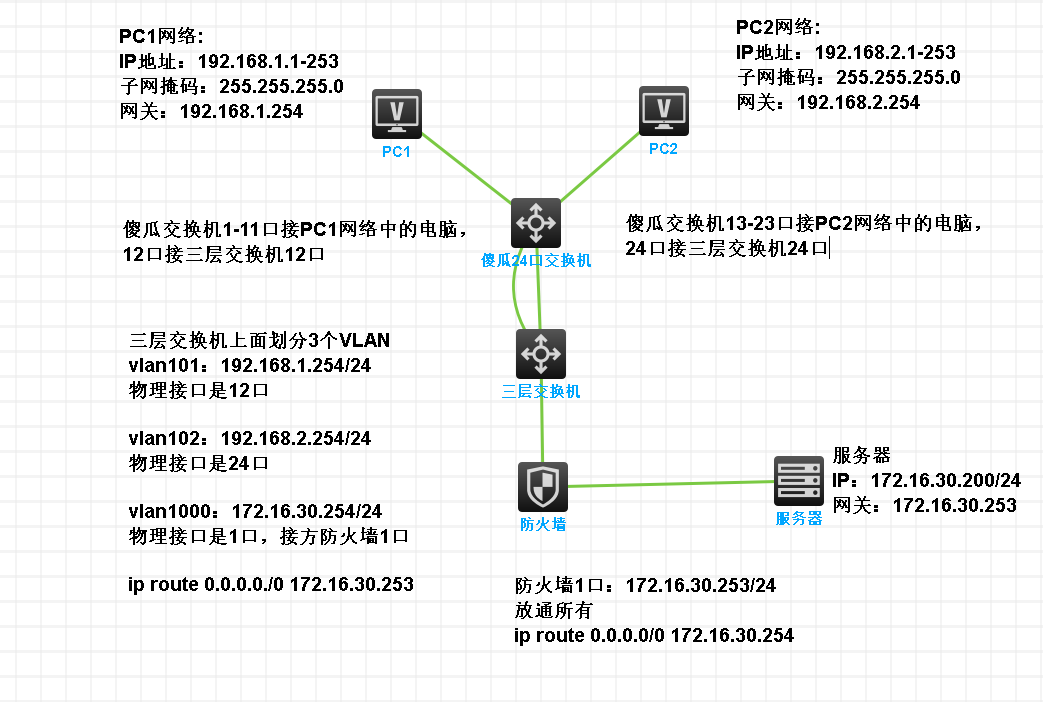 傻瓜交换机和三层交换机两条网线连接着,丢包严重,拔掉一个就会好一些。想让PC1和PC2以及服务器三个网络随意互通,如何弄呢?我知道这个拓扑有问题,有没有什么可以模拟一下这个错误的拓扑,抓包看看,我先学习学习,本人小白。