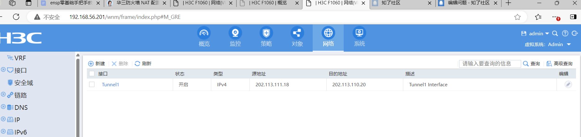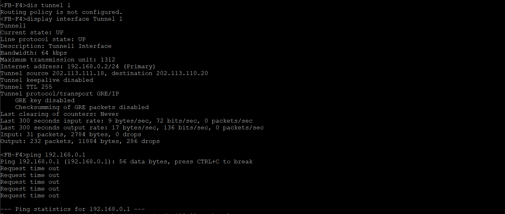 在总部和分部建立了GRE但是只有总部防火墙可以ping通分部的防火墙,分部的不可以ping通总部,且在接口显示down,怎么解决,源地址是可以ping通的,tunnel也是只成功建立一端
