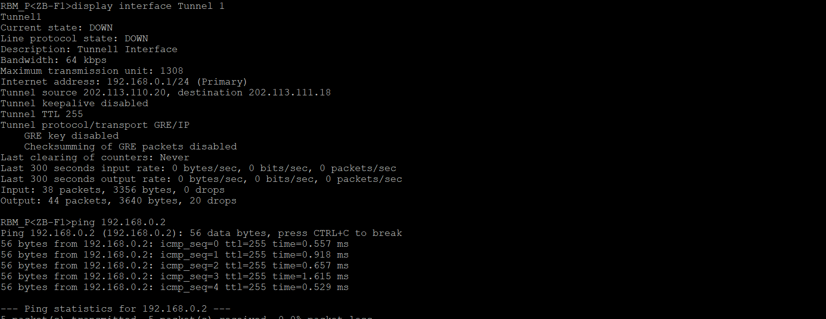 您好:正常情况下,设备判断GRE是否up的条件,是看有没有到隧道destination的路由,有路由就应该up。其次看下安全策略的放通情况检查一下这2个地方