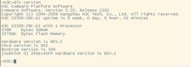 H3C S5500-28C-EI uptime is 0 week, 0 day, 0 hour, 41 minutes