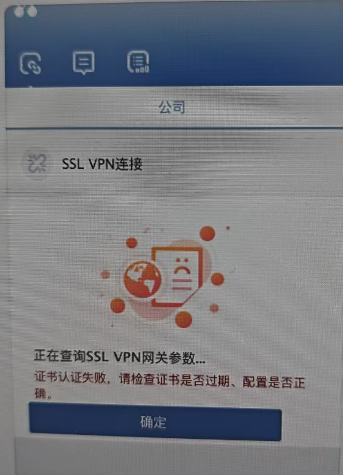 2. **证书域名不匹配**:证书绑定的域名与访问地址不一致。请确认证书的Common Name(CN)或SAN(Subject Alternative Name)包含用户访问的VPN域名。