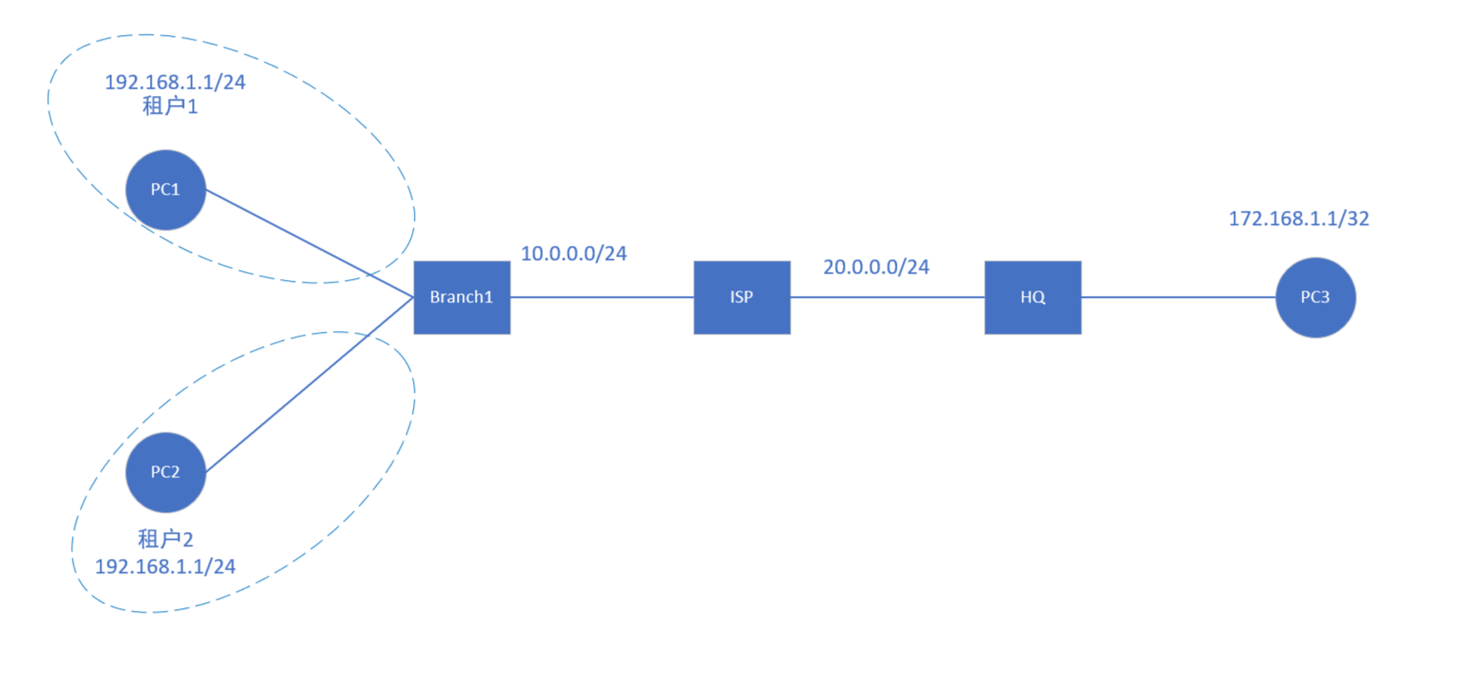分支路由器上有两个私网用户,地址均为192.168.1.1/24 通过VRF隔离,私网地址相同,均要和总部路由器的172.168.1.1私网地址进行互通,现在希望通过IPsecVPN实现,请问有相关的参考配置案例吗?