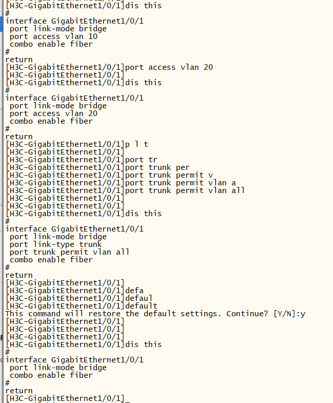 直接敲新的配置;undo旧的配置;default+y直接恢复接口配置