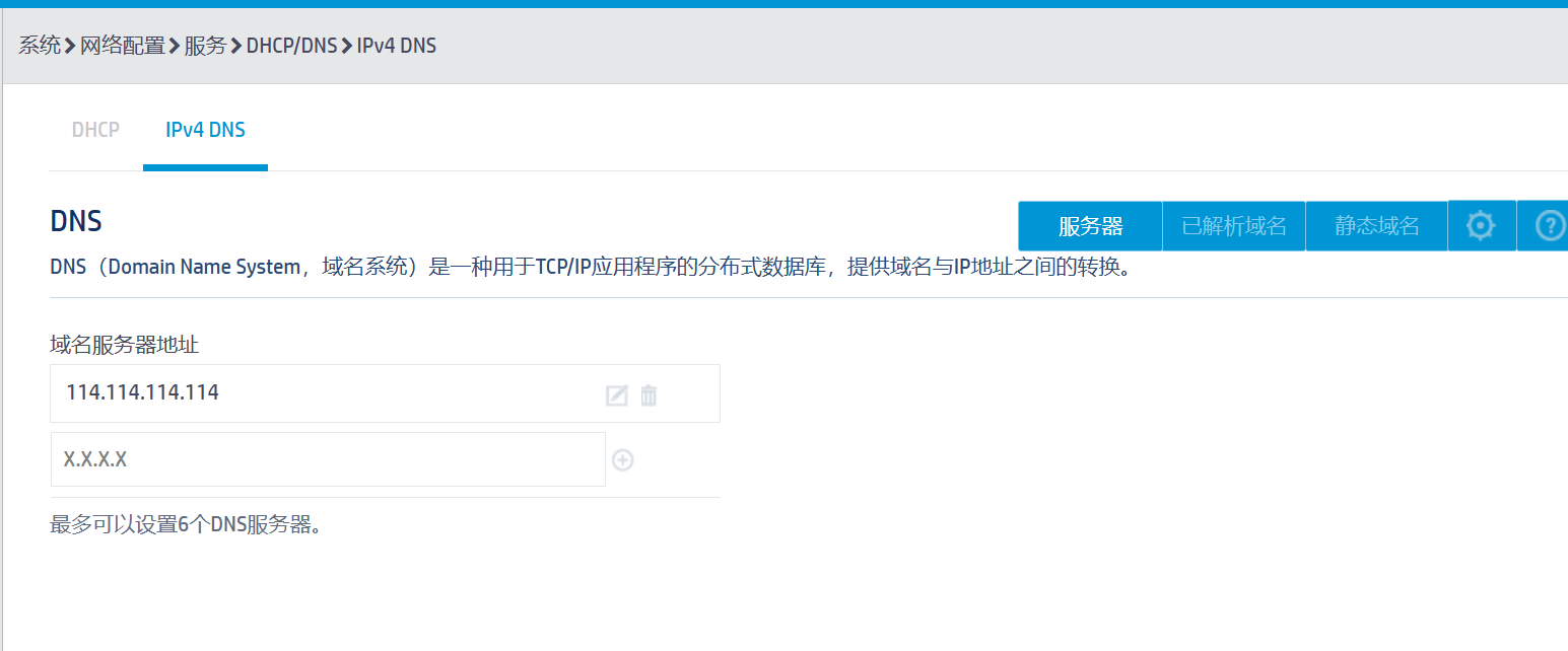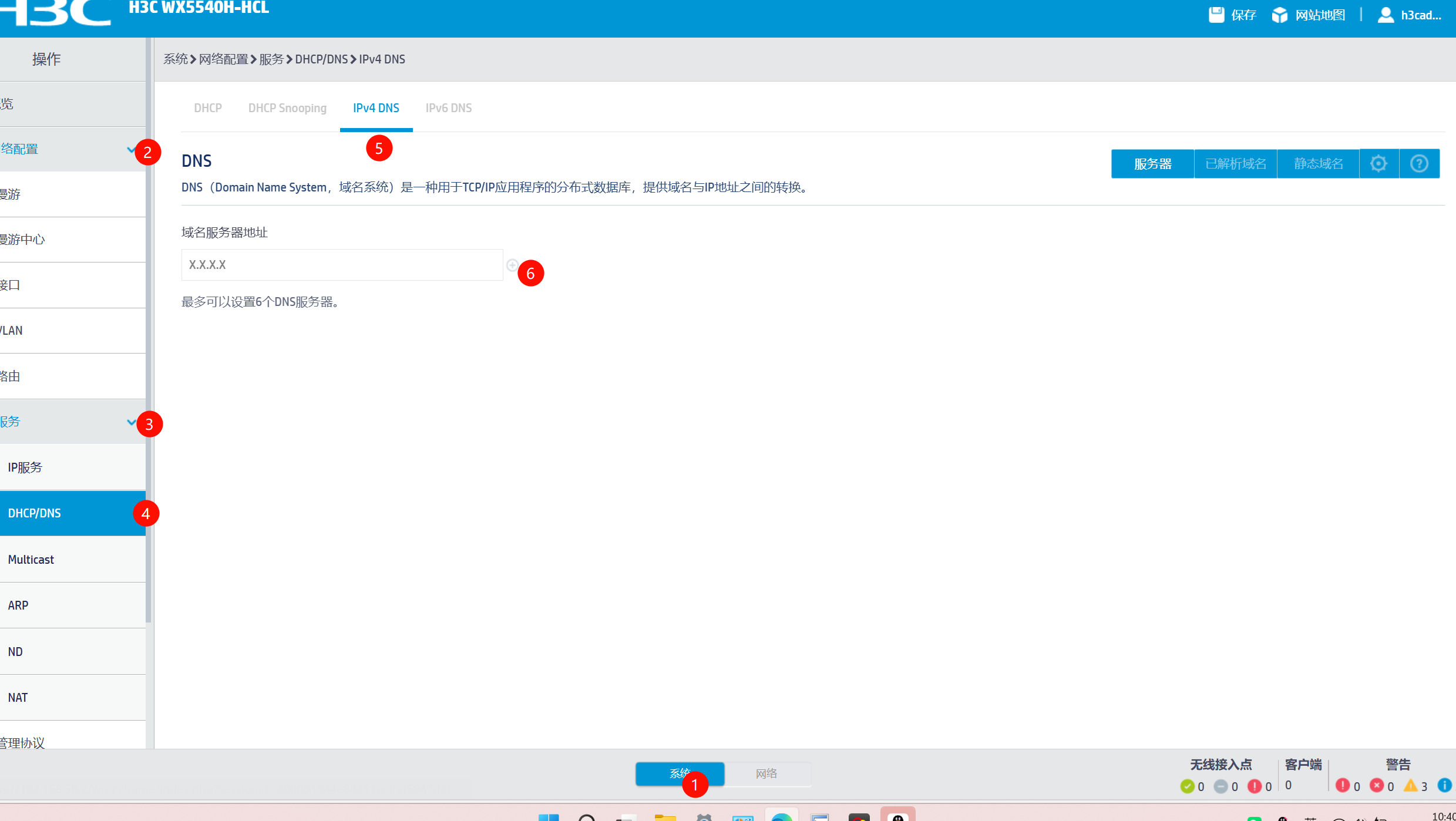 点击WEB 页面的下方的系统,然后左侧菜单栏下 有个 服务/DHCP DNS 服务