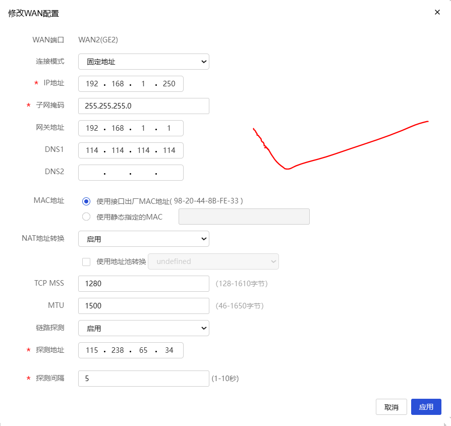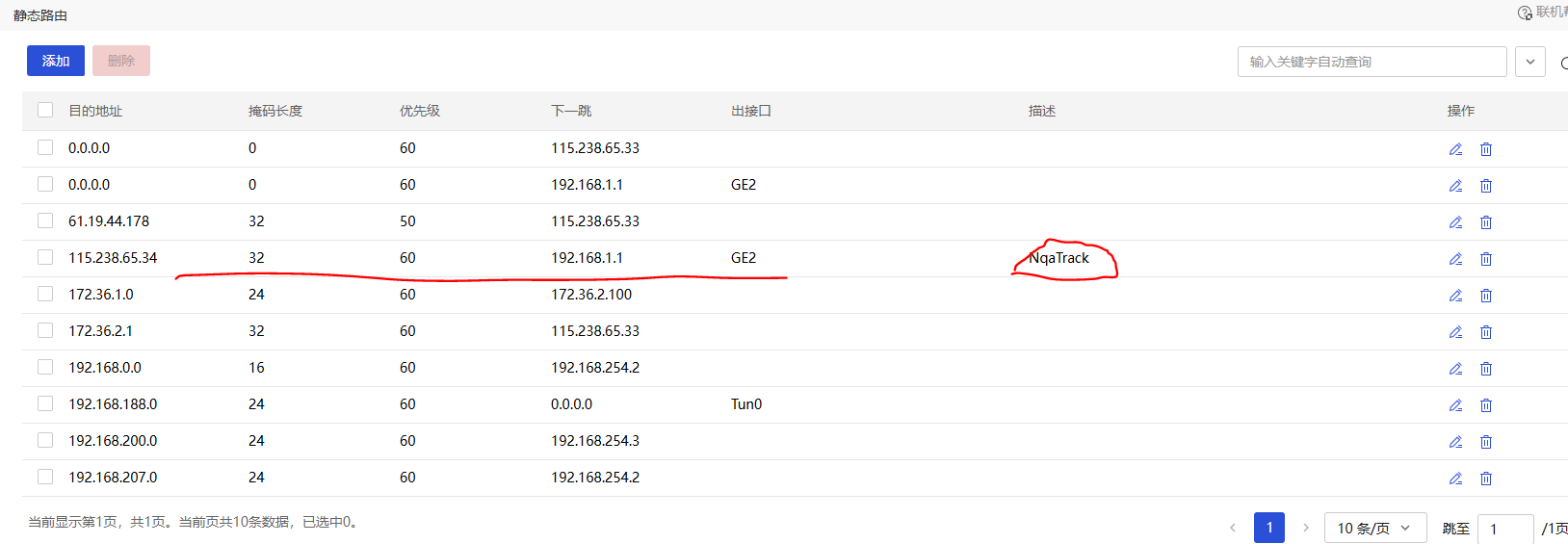 这个NQA是不是应该设置的是对端地址,比如是网关地址,而不是另外一条线路的地址。