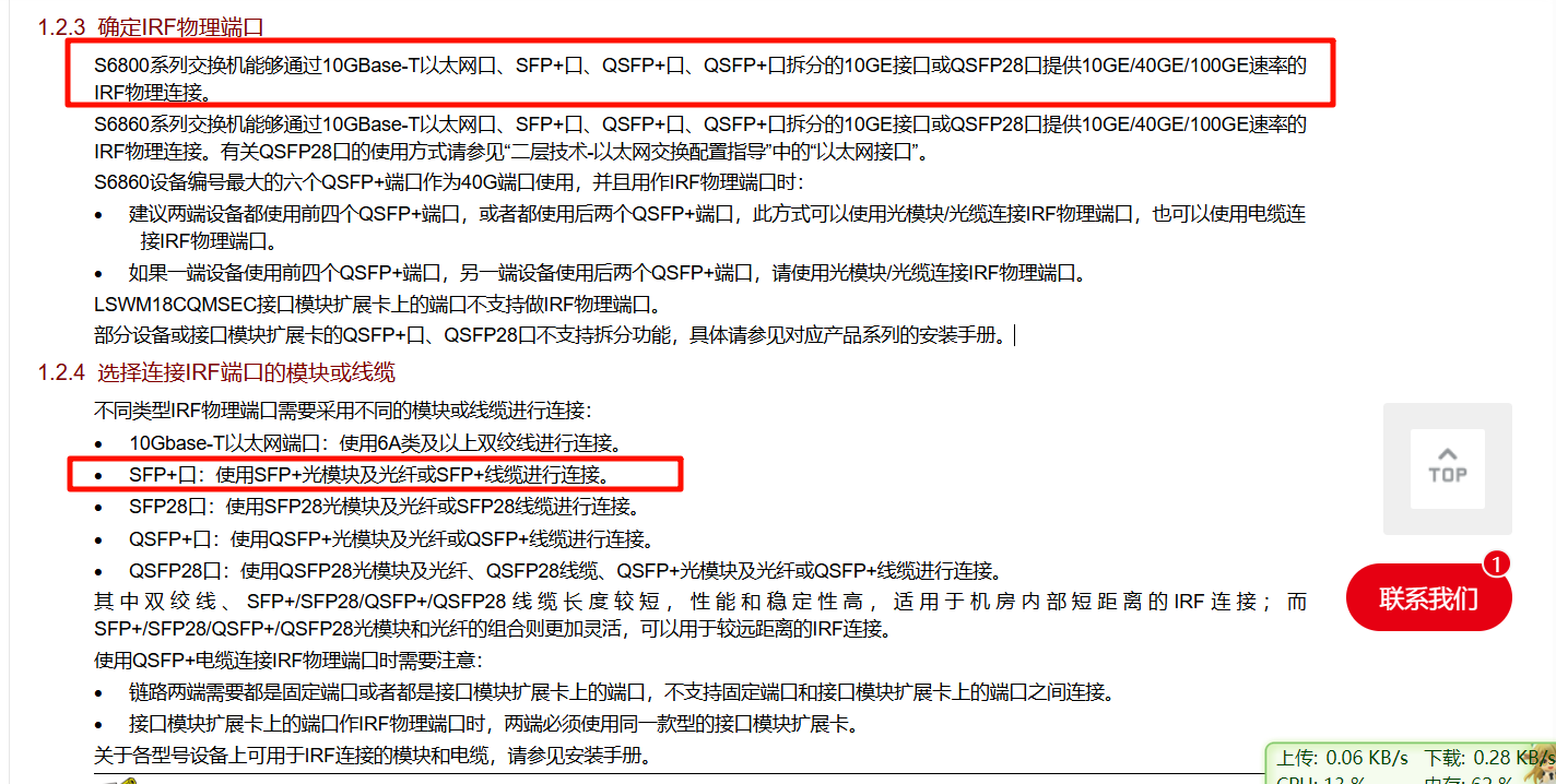 堆叠已经起来且用的40G端口,但是设备1与设备2也需要做堆叠线,客户现在没有多余的线路,是否可以改用10G的光纤来做。