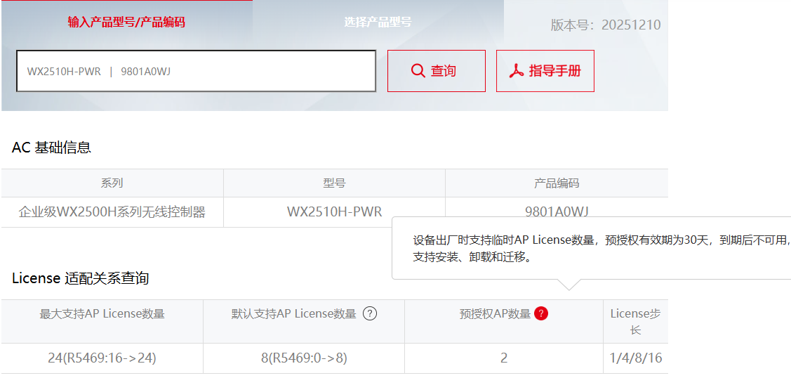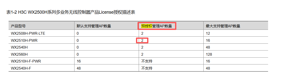 wx2510h-pwr带默认的ap授权吗