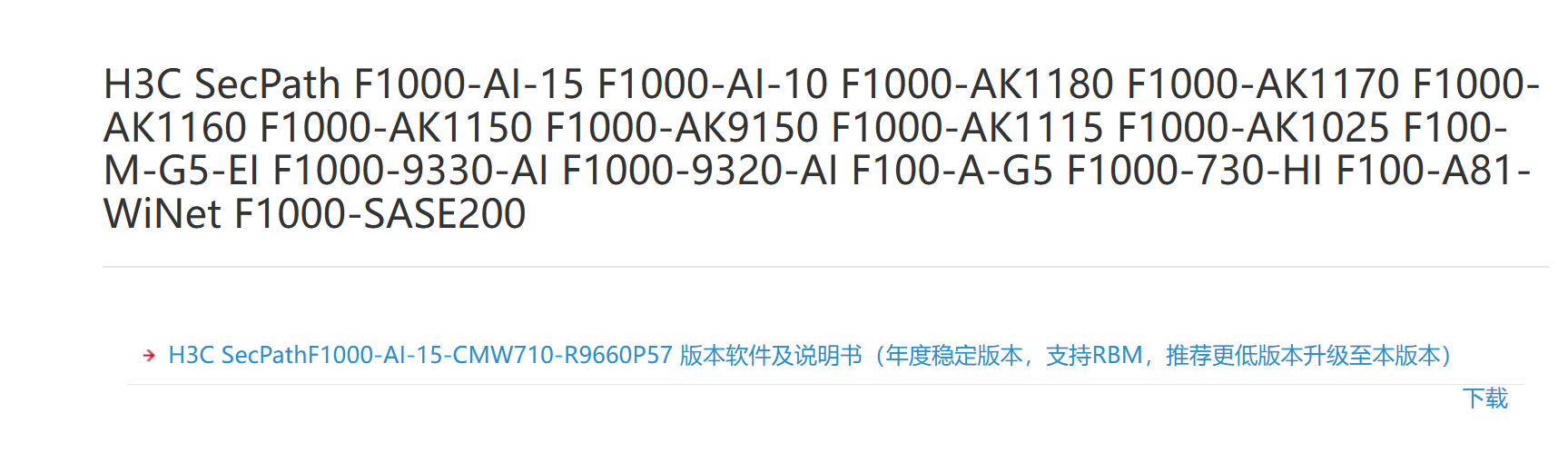 H3C SecPath F1000-AK1150 目前版本号为:7.1.064,Release 8860P46,求最新固件的下载地址