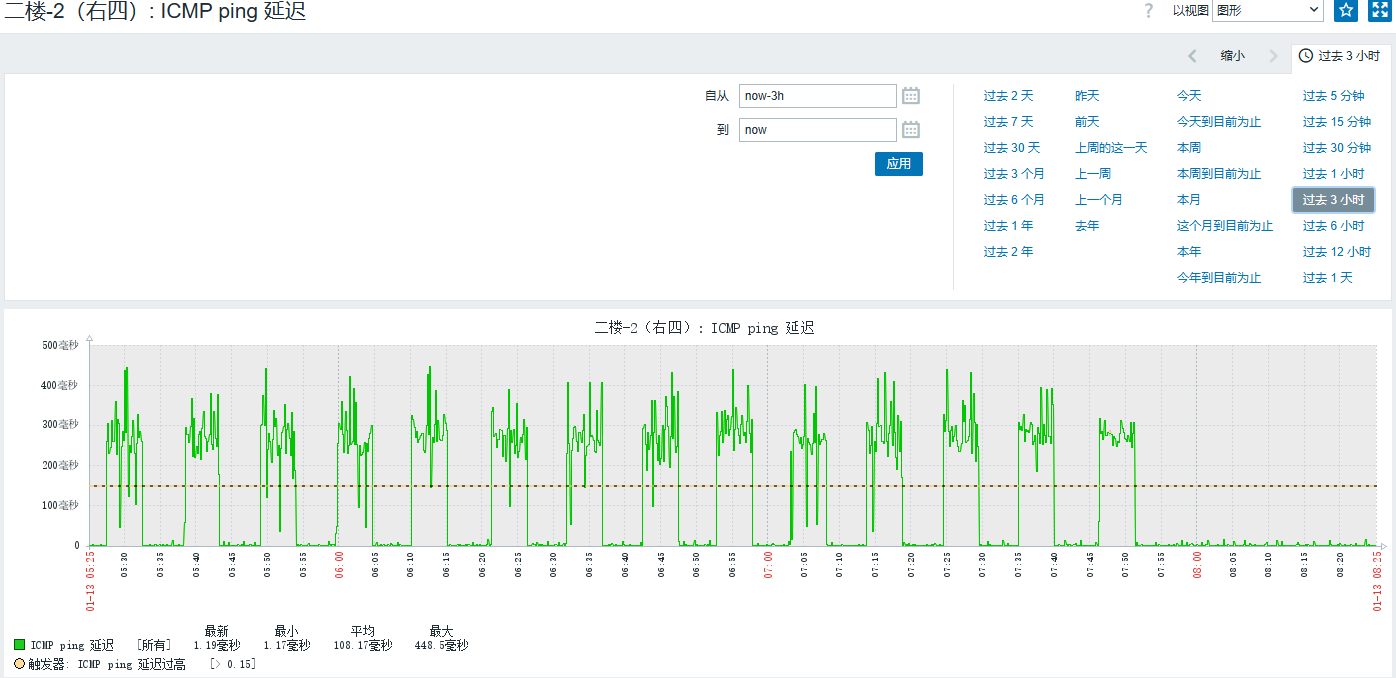 这个是zabbix监控,ping延时高的时候,交换机cpu同时也会高。 ping延时低的时候,cpu就会也跟着恢复正常值。
