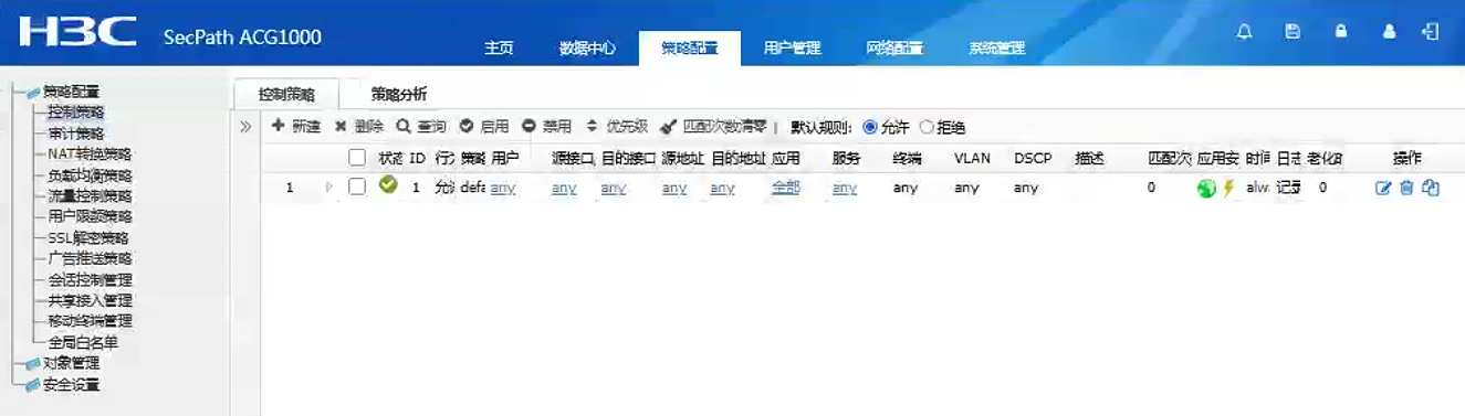 ACG1000配置相关策略但是web界面没有显示审计日志