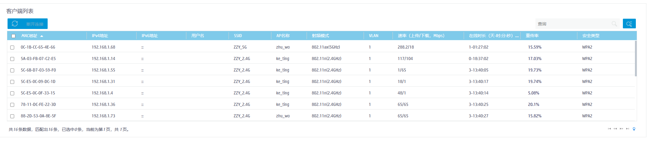 无线终端状态在命令行下可以通过相关命令查看,部分信息与WEB界面显示的表项一致,如终端的MAC地址、IP地址、关联AP名称、SSID、RSSI、无线模式、在线时长等。较新版本AC还支持查看历史关联记录及上下线原因码(如通过 `display wlan client history-record` 命令)。虽然命令行信息更全面、详细,但WEB界面展示的内容在命令行中基本可覆盖,两者表项高度对应,可实现一致的状态查看。