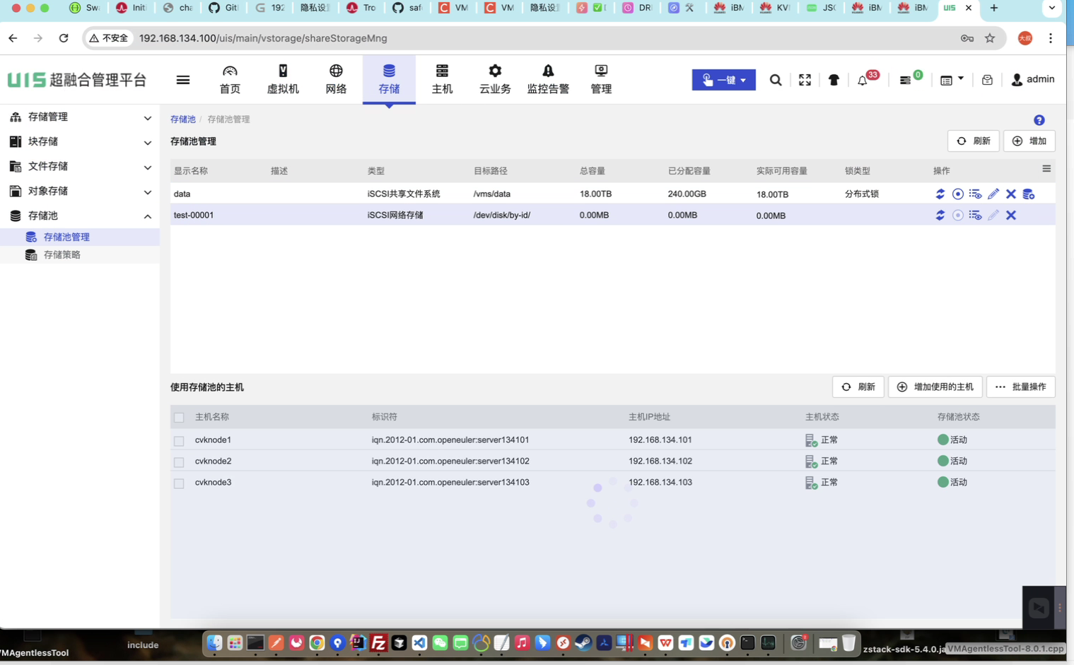 uis超融合,版本V8.0 (R0886P05),x86架构3节点,分布式存储似乎没有受到影响,故障发生在对接外部存储的过程中。