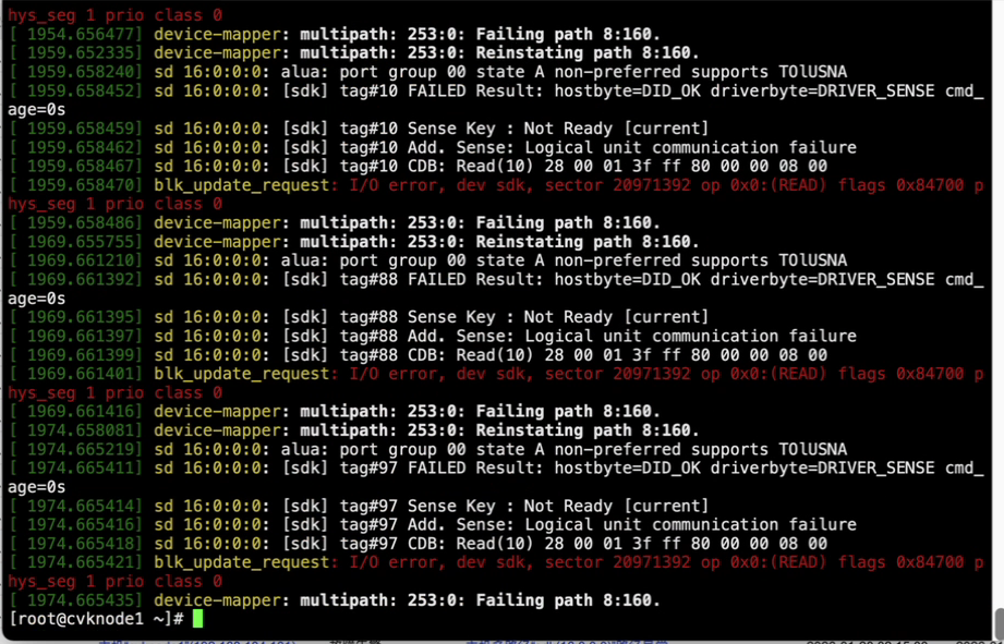 多路径故障会导致存储操作卡死(故障手册6W101网络异常场景)。