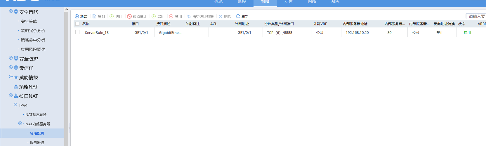 参考手册检查配置 2.13.3 外网用户通过外网地址访问内网服务器配置举例