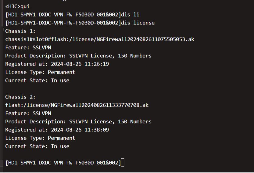 两个150个 SSLVPN License的授权,同时激活给墙1和墙2,防火墙实际可以登录多少SSLVPN用户?