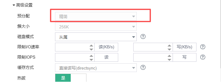 超融合虚拟机vdb磁盘预分配模式无法变更