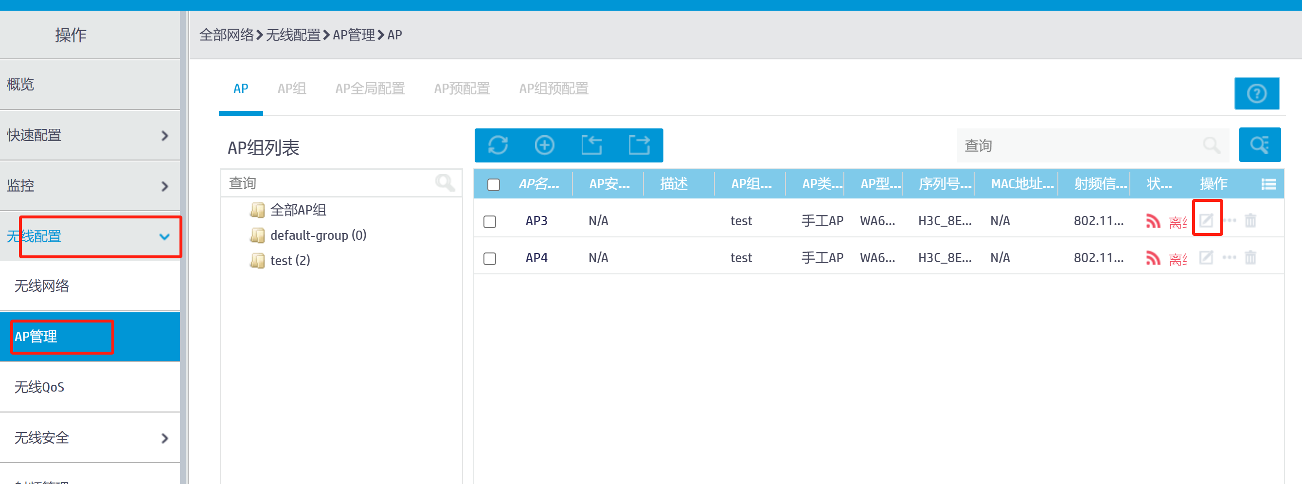 Ac自动添加设备成功, Ap的配置跟其他的ap是一样的,状态也是在线中,但手机测试网络的时候就无法连接到新增的ap