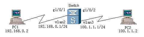 1、 如图所示连接PC与设备,然后为相关设备配置IP地址