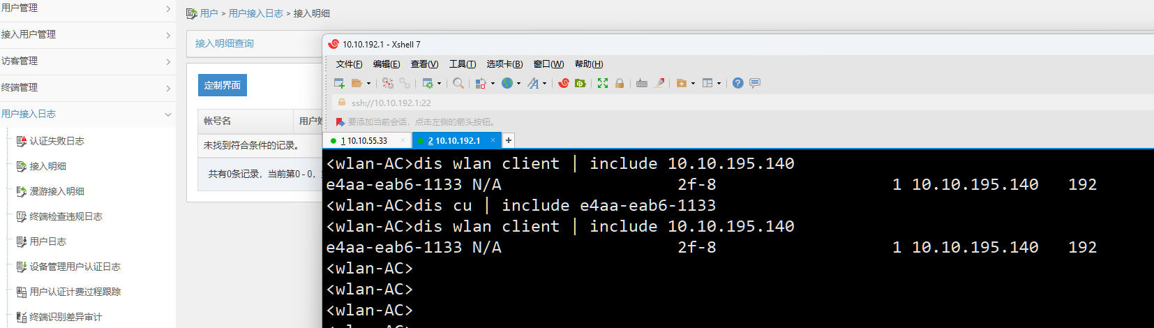 三、在AC上查找终端对应的用户信息