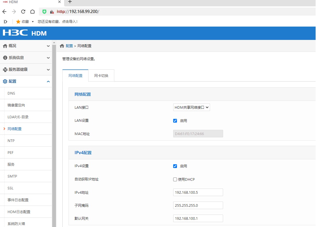 HDM专用接口:192.168.99.200(D4:61:FE:17:24:65)