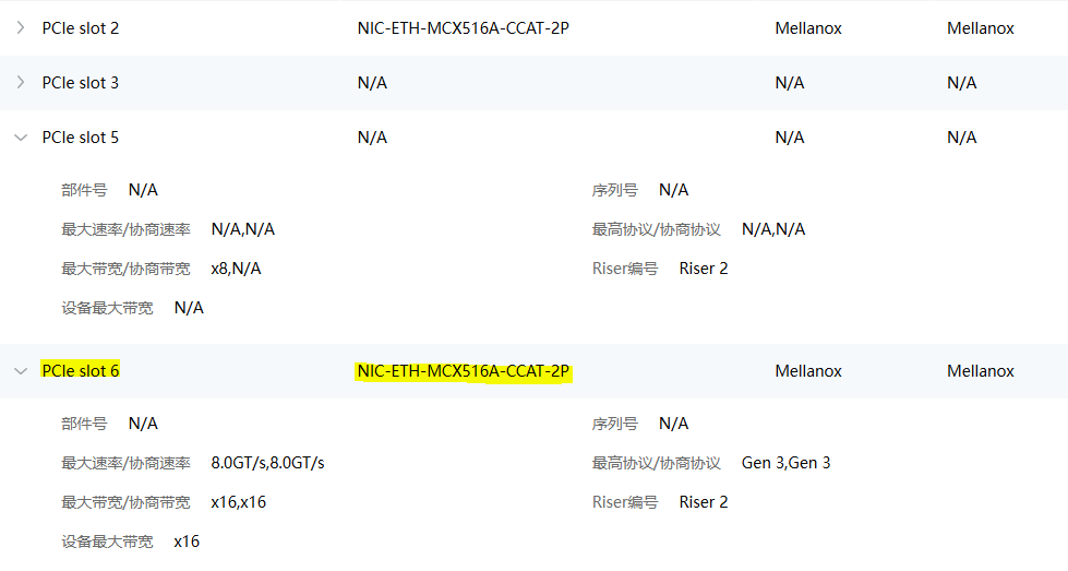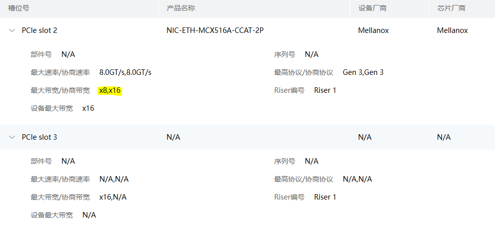 发的时候老提示有敏感词删了好多,问题现象是100G卡插在2/5槽,但是识别到2/6槽了,官网显示这款riser卡pciex16的槽位在2/5,为什么会识别到2/6?,而且2卡的协商带宽大于最大带宽,我想要满带宽,这个会影响使用吗?